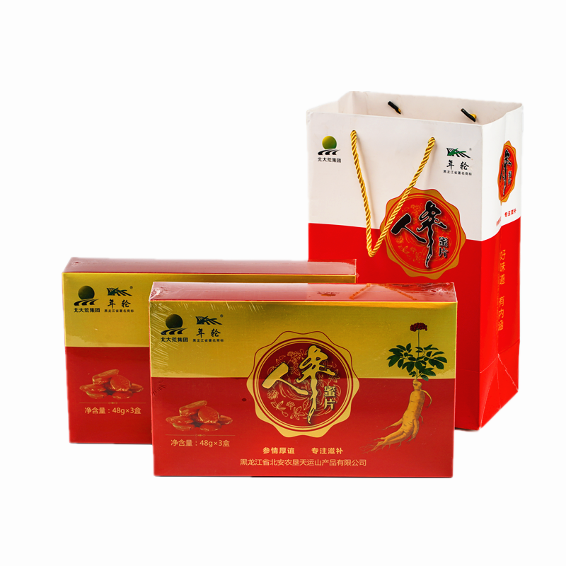 “年轮”系列产品,产品有:食用菌系列产品、精加工山产品礼品系列产品、蕨菜系列产品、干菜加工系列、中草药系列产品。由于国内外消费市场倾向于无污染、无公害的绿色有机食品,公司生产的产品是以小兴安岭原始野生的山野菜和纯有机种植的蔬菜为加工原料,加工过程无任何污染和对产品原有成分的破坏,保持了产品天然野生的风味和营养,产品通过了国家认鉴委认证的ISO9000产品质量体系认证。